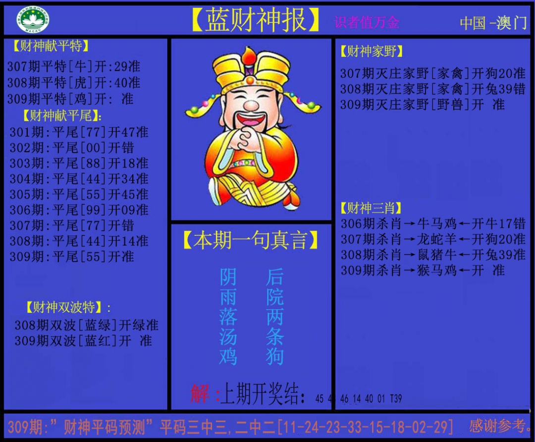 311期:财神奇缘/提供一句解特/特玛诗句/富豪一句平